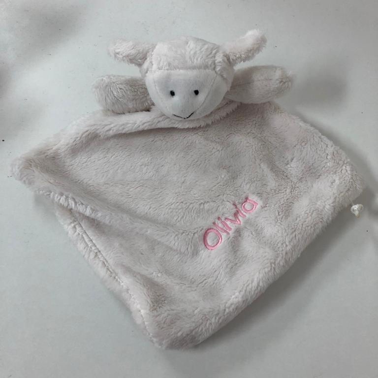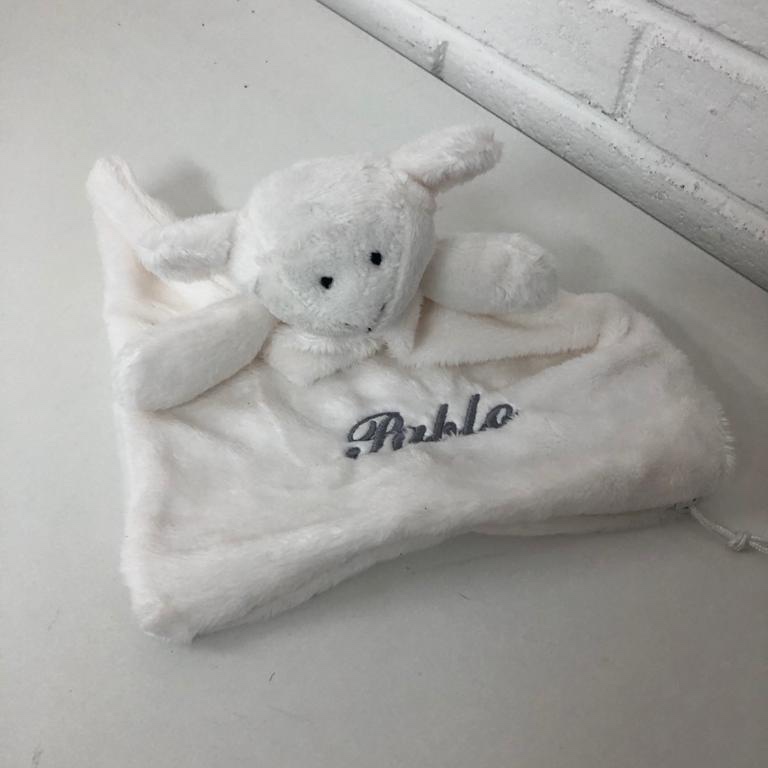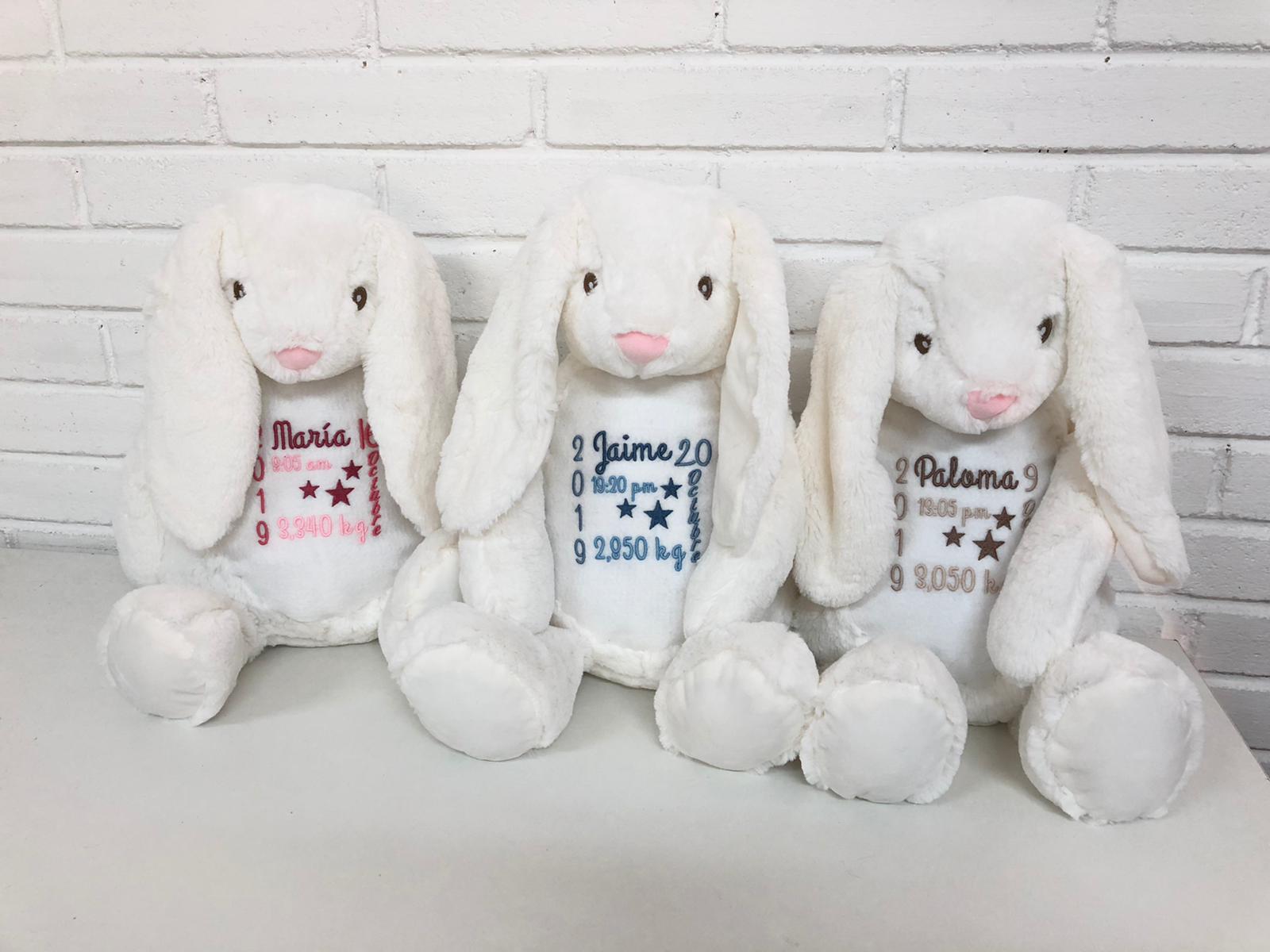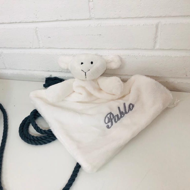 Bordado en color: rosa, azul, gris o beige.